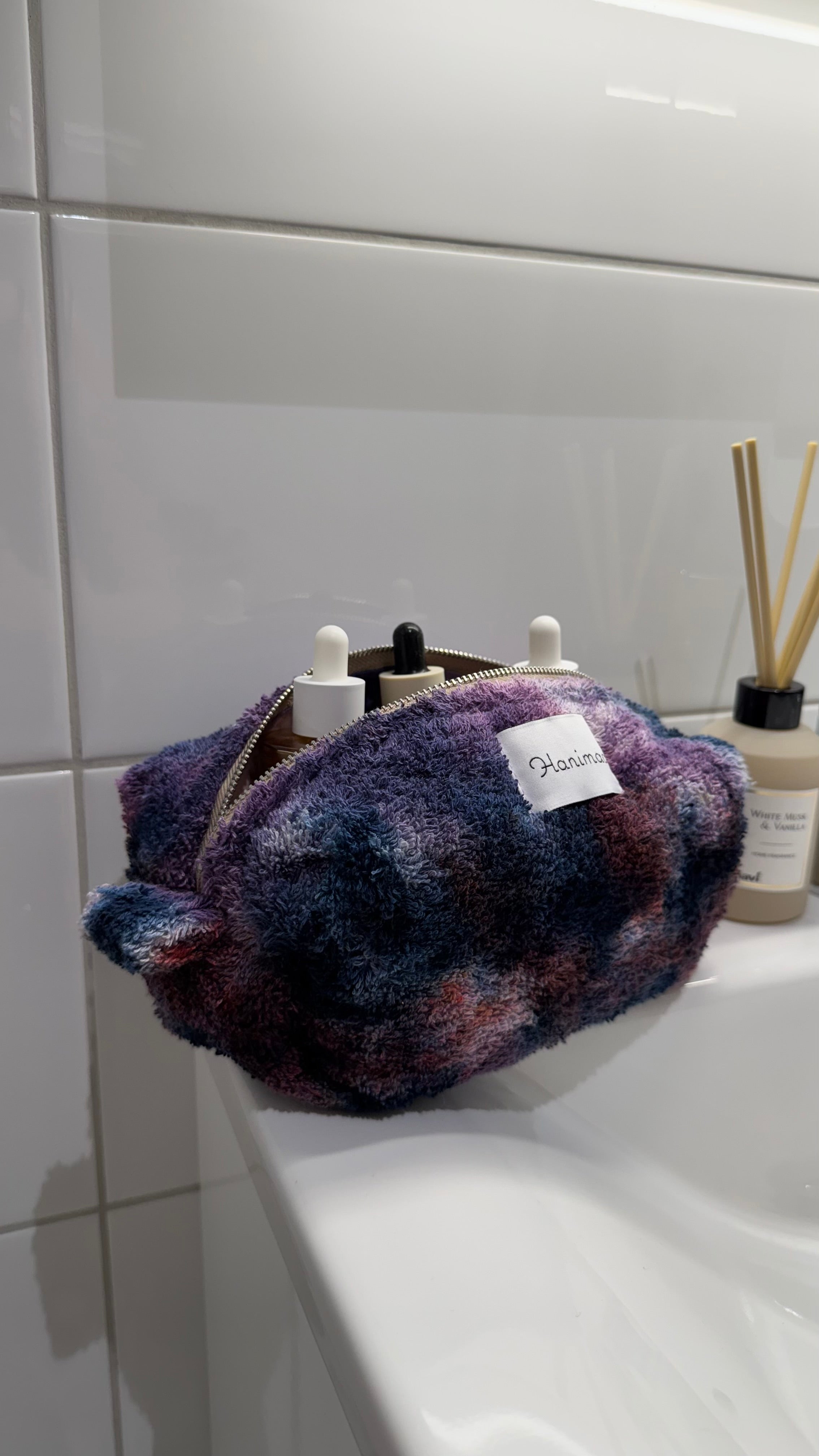 Tämä meikkilaukku on valmistettu ihanasta, pehmeästä luomufroteesta, joka näyttää ja tuntuu ylelliseltä. Froteen pörröinen tekstuuri tekee laukusta muhkean ja helposti napattavan – se pysyy mukana arjessa ja reissuissa.