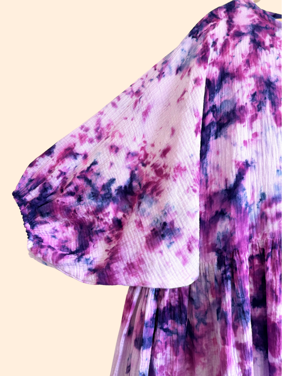 Aurora-mekko on ajaton ja ihanan kevyt boheemi mekko, joka hulmuaa kauniisti kesätuulessa ja liikkuu vapaasti mukanasi. Sen 100 % puuvillainen tuplaharsokangas eli musliinia joka on erittäin hengittävä, ilmava ja pehmeä ihoa vasten. Käsinvärjätty materiaali tuo jokaiselle mekolle uniikin värisävyn ja kauniin tekstuurin.