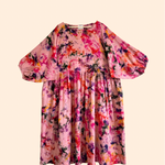 Mekon rento A-linjainen leikkaus antaa liikkumisen vapautta, ja vyötärön rypytys tuo sopivasti muotoa. Kuminauhalliset hihat antavat mahdollisuuden muokata tyyliä: pidä hihat ylhäällä kesäpäivänä tai laske ne alas pehmeämmän ilmeen luomiseksi. Sivutaskut tuovat käytännöllisyyttä, ja viileämmällä säällä mekko toimii myös pitkänä tunikana housujen kanssa.