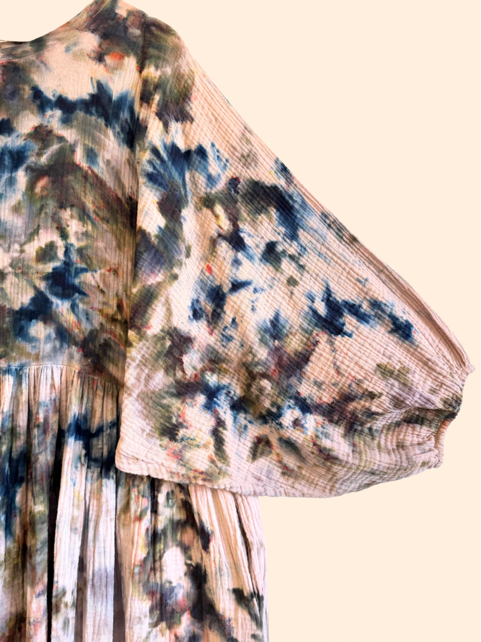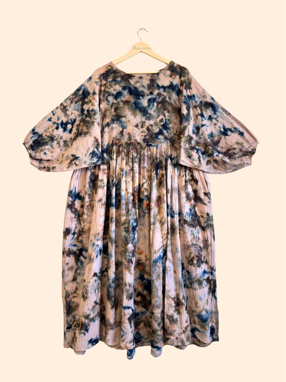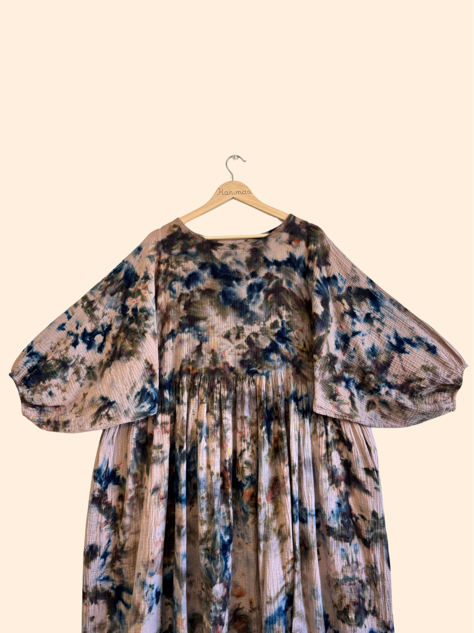 *Huom! Mallilla päällä vastaava sävy. Pieniä kuvio ja sävy eroja saattaa esiintyä myynnissä olevan mekon kanssa. Jokainen mekko käsinvärjätään joka tekee niistä uniikin!