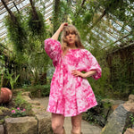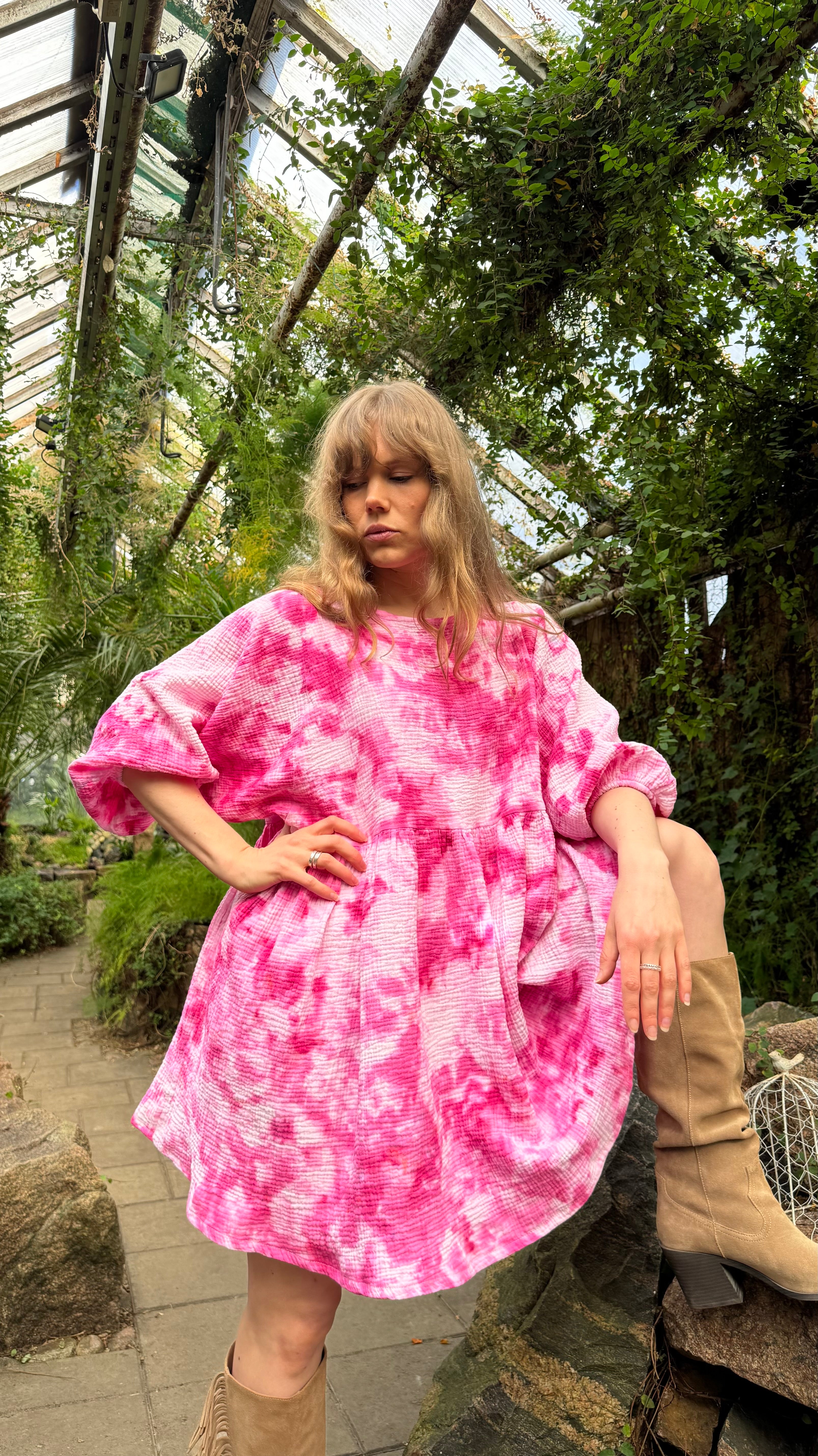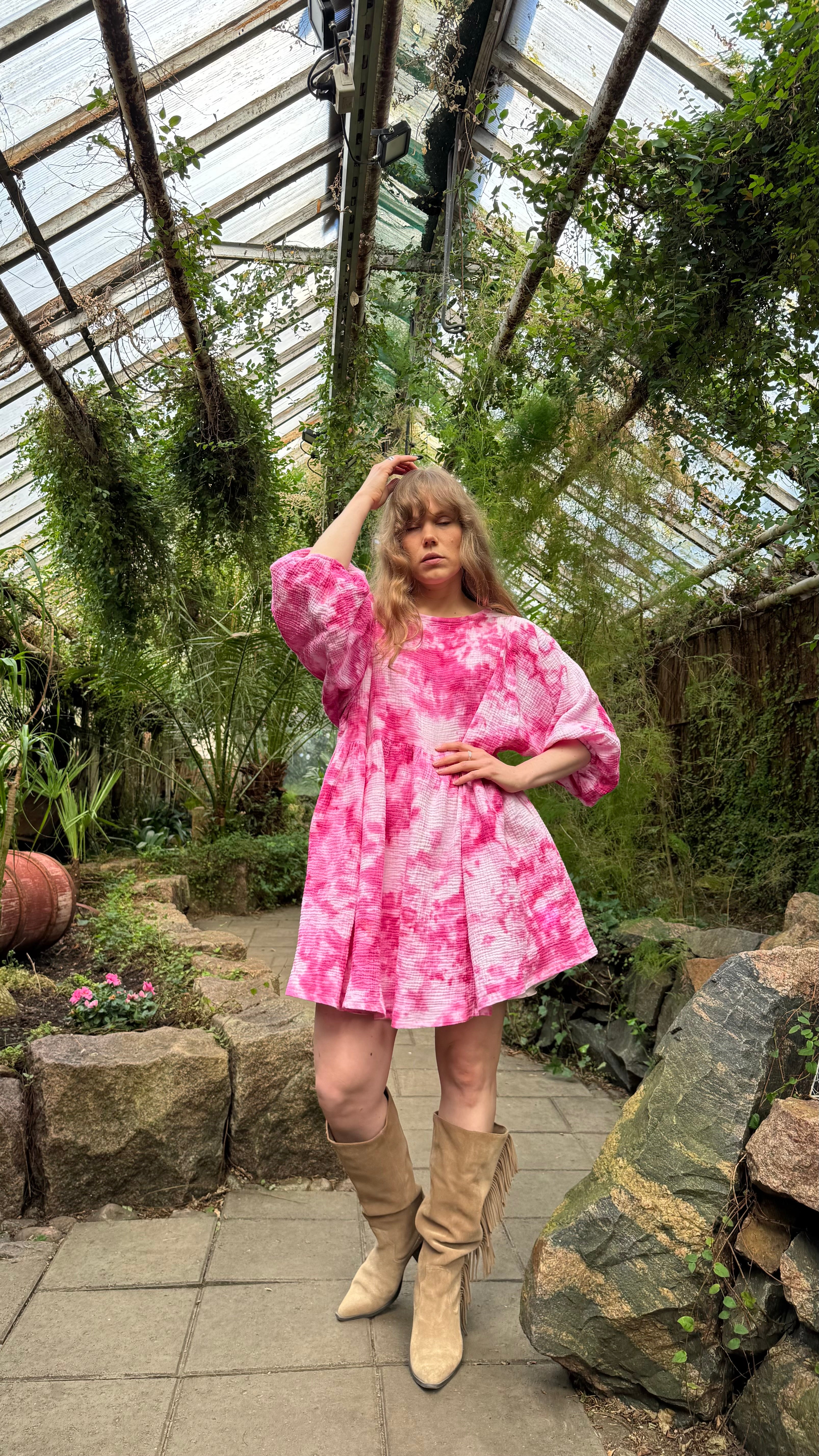 *Huom! Mallilla päällä vastaava sävy. Pieniä kuvio ja sävy eroja saattaa esiintyä myynnissä olevan mekon kanssa. Jokainen mekko käsinvärjätään joka tekee niistä uniikin!