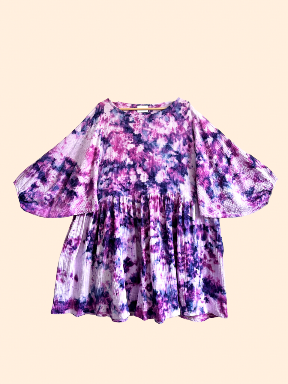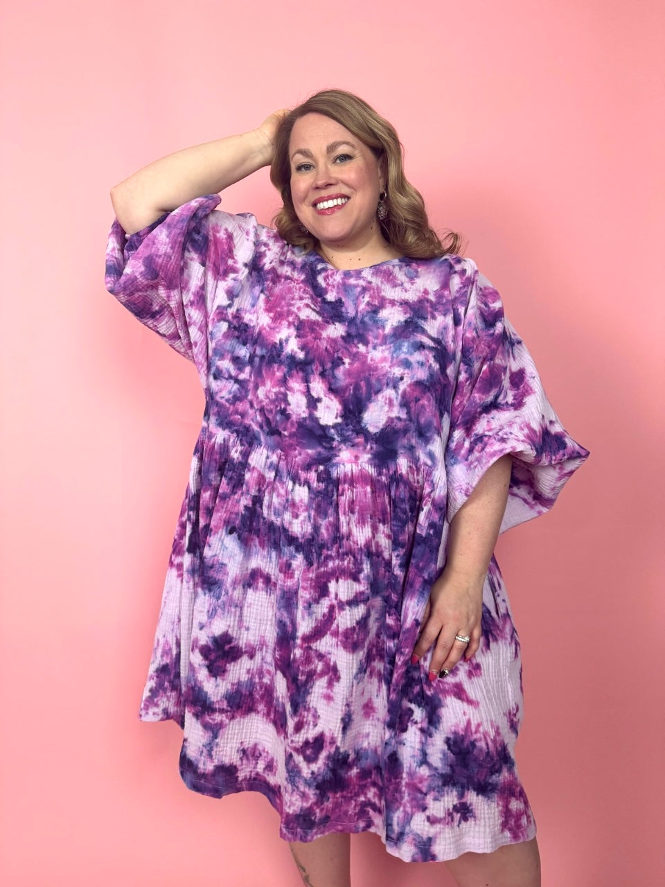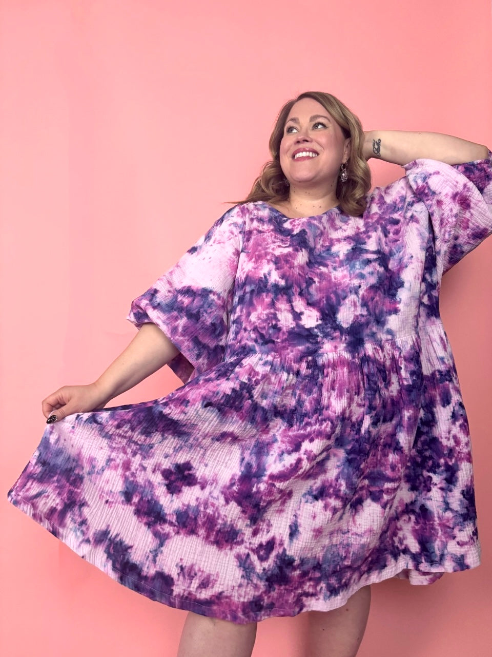 Mekon rento ja väljä leikkaus antaa liikkumisen vapautta, ja vyötärön rypytys tuo juuri sopivasti muotoa. Hihojen kuminauhojen ansiosta voit leikitellä ilmeellä – nosta hihat ylös kuumana päivänä tai laske ne alas tuomaan pehmeyttä ja eleganssia. Sivutaskut tuovat ripauksen käytännöllisyyttä, ja viileämmällä säällä mekko toimii kauniisti myös pitkänä tunikana housujen kanssa.
