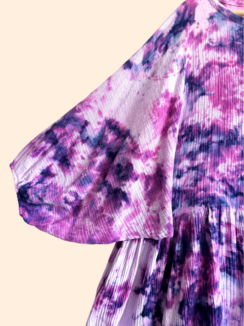 Aurora-mekko hulmuaa kesätuulessa, kevyenä ja vapaana. Sen pehmeä tuplaharsokangas – hengittävä ja ilmava musliini – hellii ihoa ja liikkuu kauniisti mukana jokaisessa askeleessa. 100 % puuvillan upea tekstuuri tuo kankaaseen elävän pinnan ja upean värisyvyyden, joka saa jokaisen sävyn hehkumaan ainutlaatuisesti.