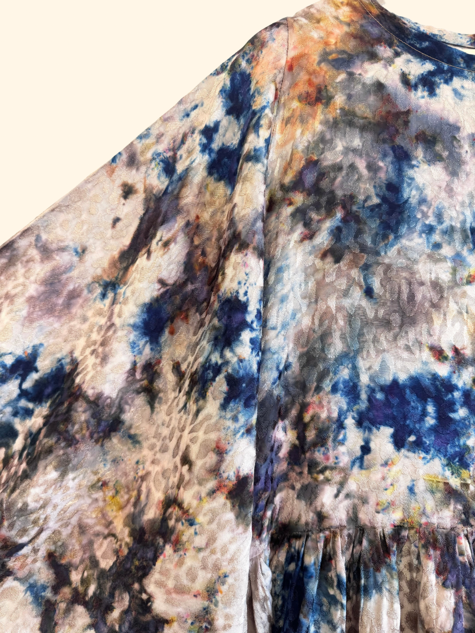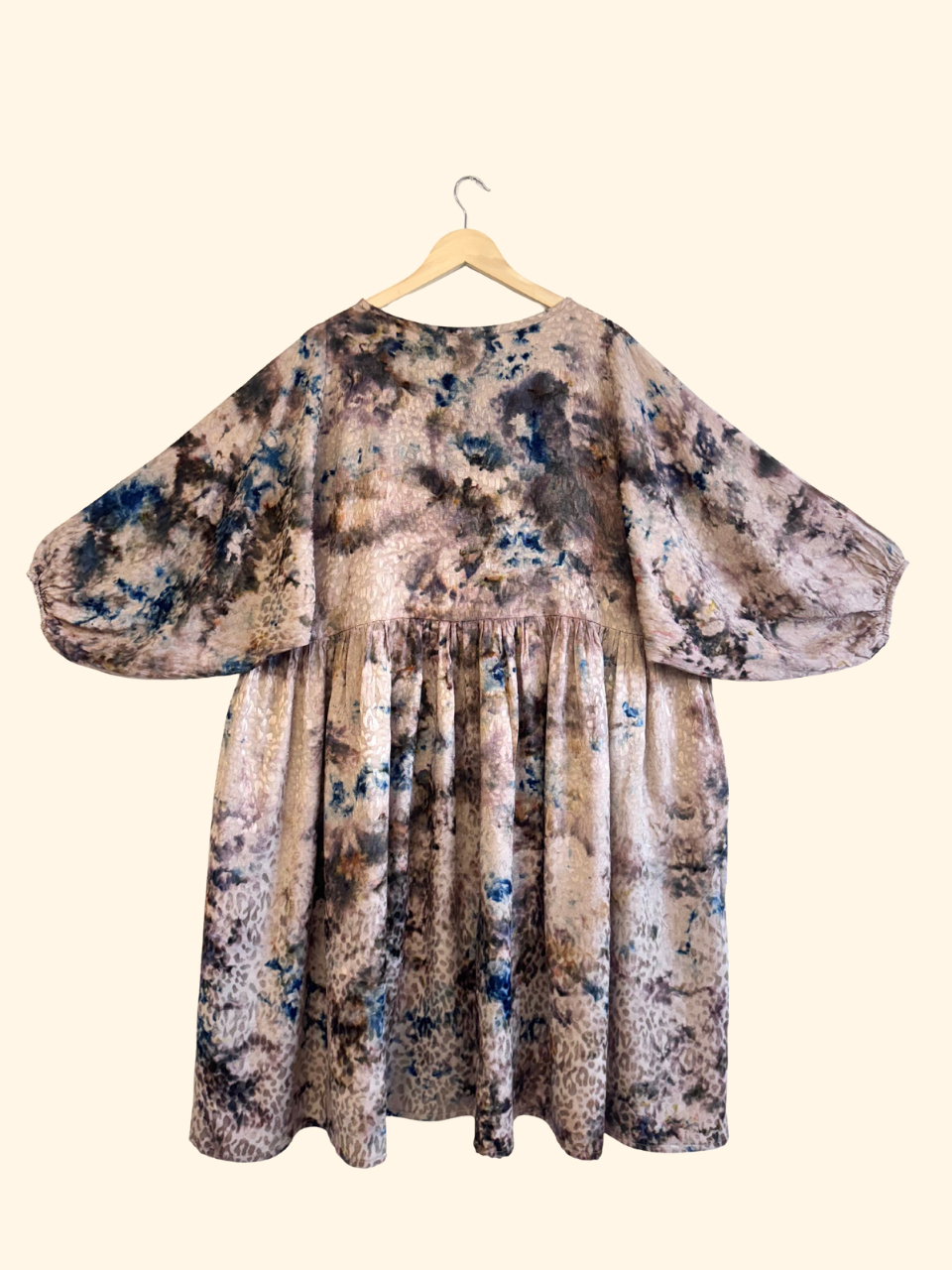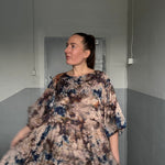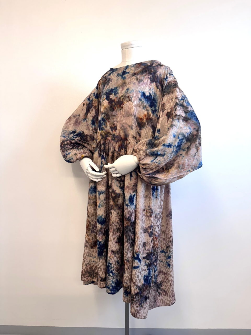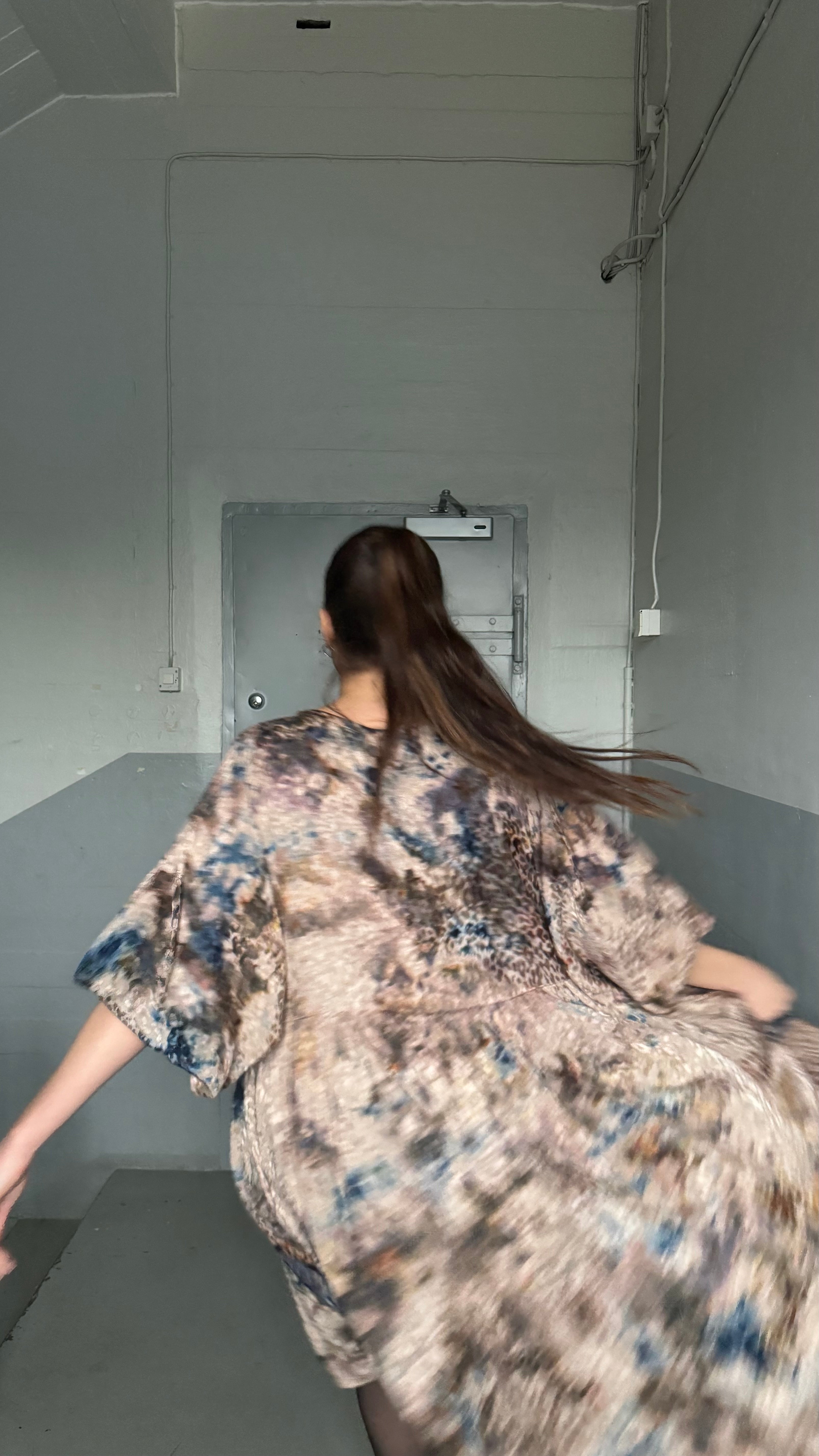 Tämä pantterikankainen Aurora on mitaltaan lyhyttä Aurora-mekkoa hieman pidempi, jolloin helma laskeutuu polven alapuolelle ja luo kokonaisuuteen juhlavamman, elegantin pituuden. Malli säilyttää Auroralle tutun rennon istuvuuden ja liikkeen vapauden, mutta tuo asuun hienostuneen juhlavivahteen.