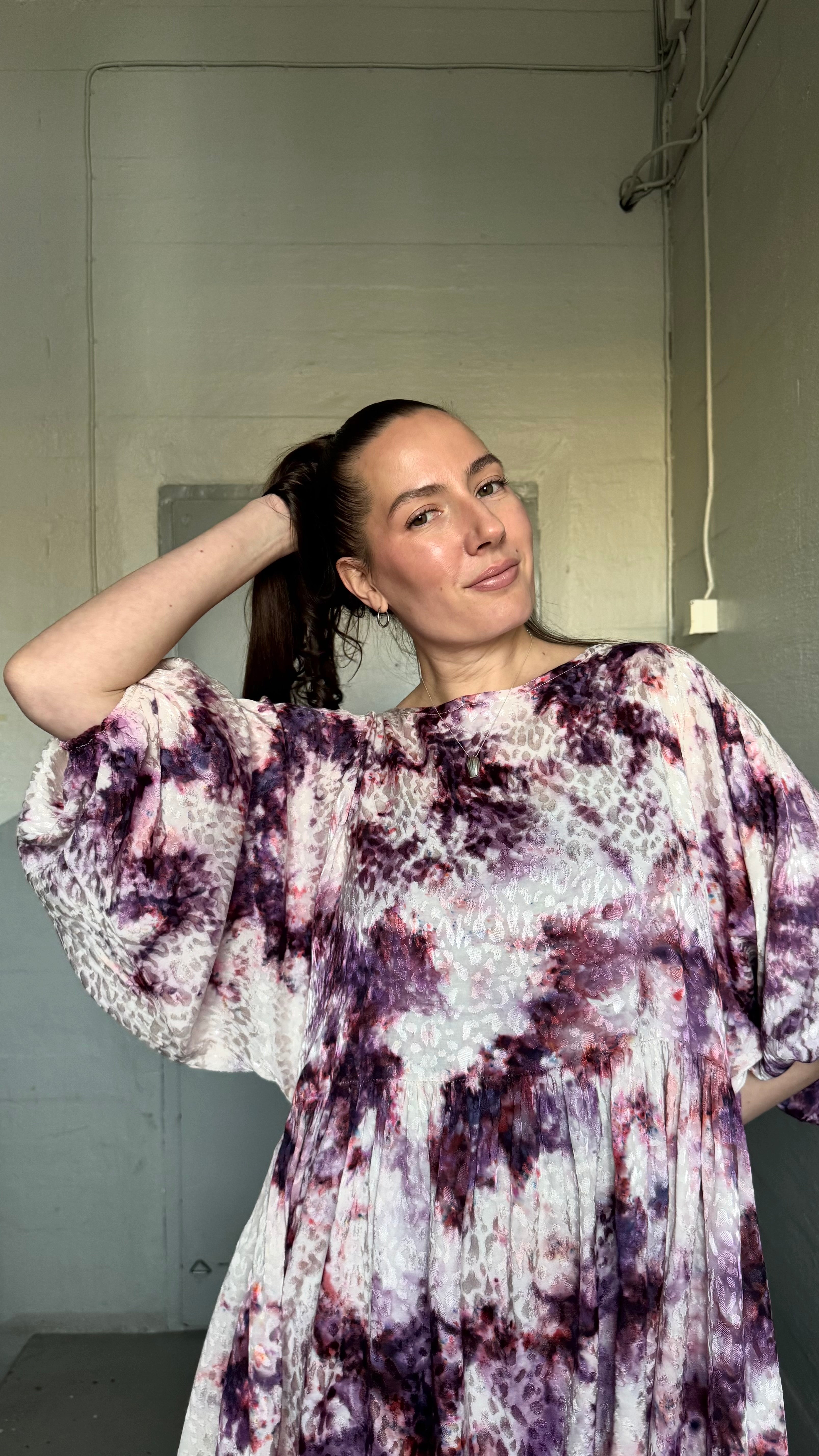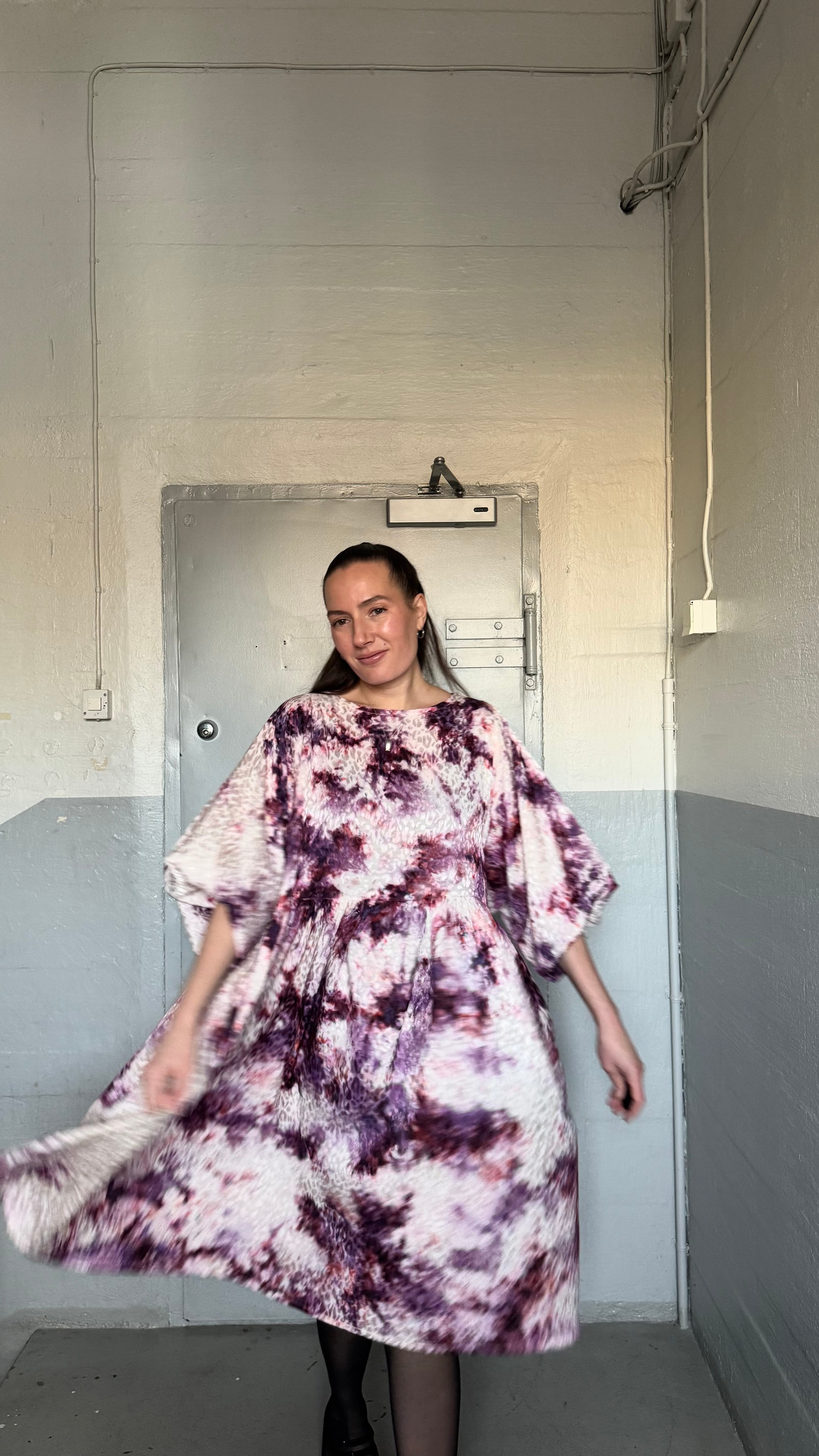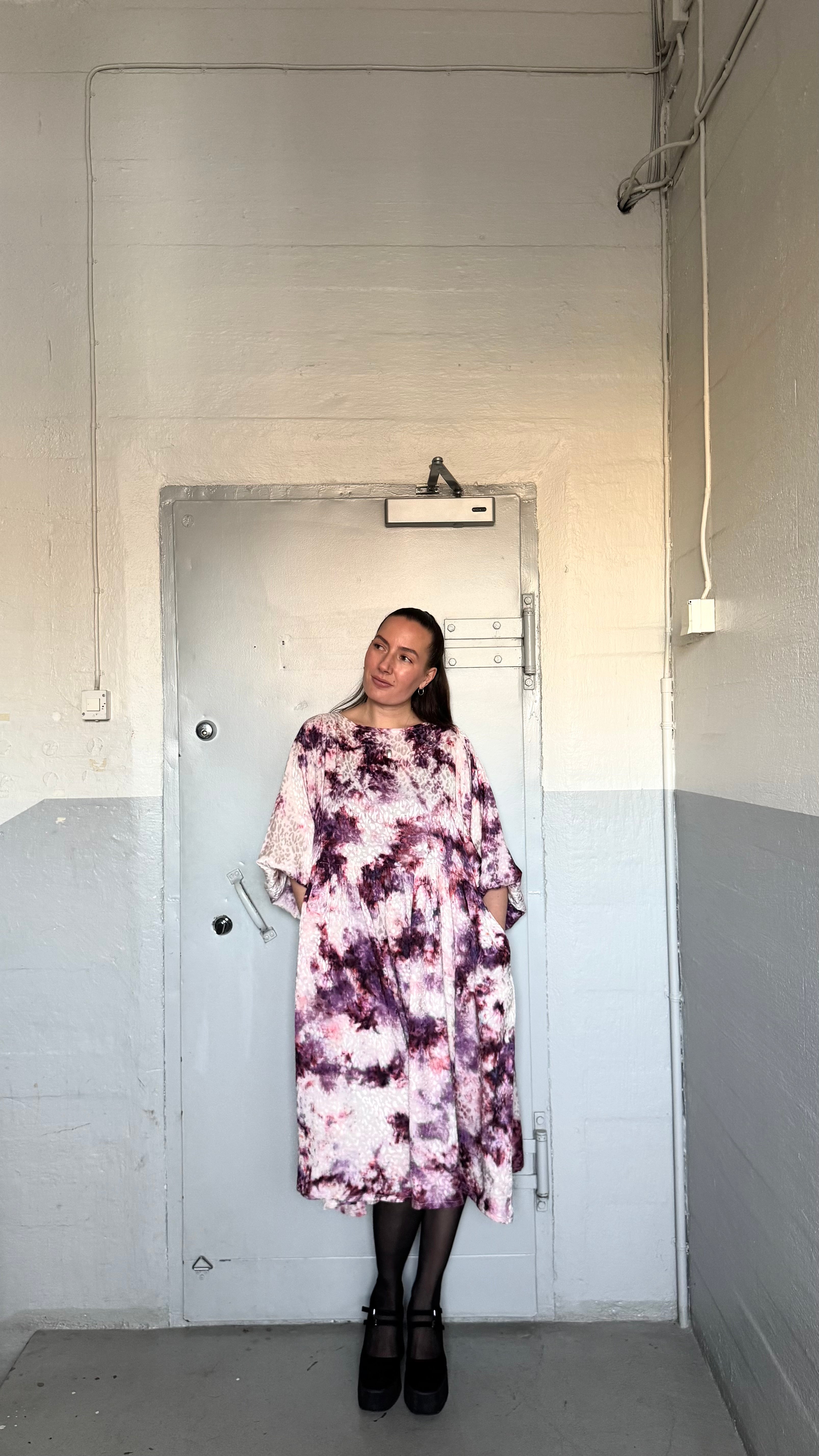 Tämä pantterikankainen Aurora on mitaltaan lyhyttä Aurora-mekkoa hieman pidempi, jolloin helma laskeutuu polven alapuolelle ja luo kokonaisuuteen juhlavamman, elegantin pituuden. Malli säilyttää Auroralle tutun rennon istuvuuden ja liikkeen vapauden, mutta tuo asuun hienostuneen juhlavivahteen.