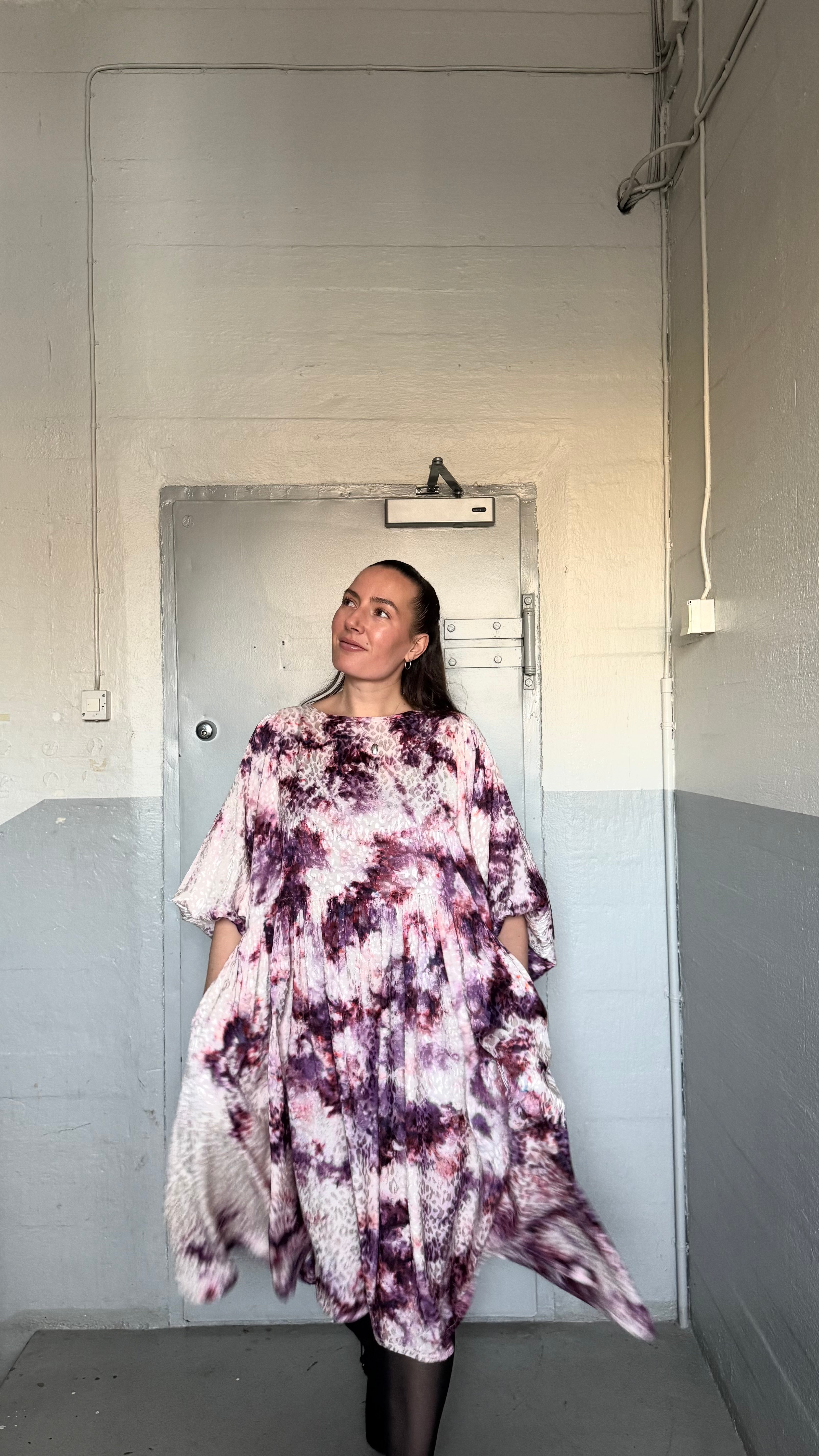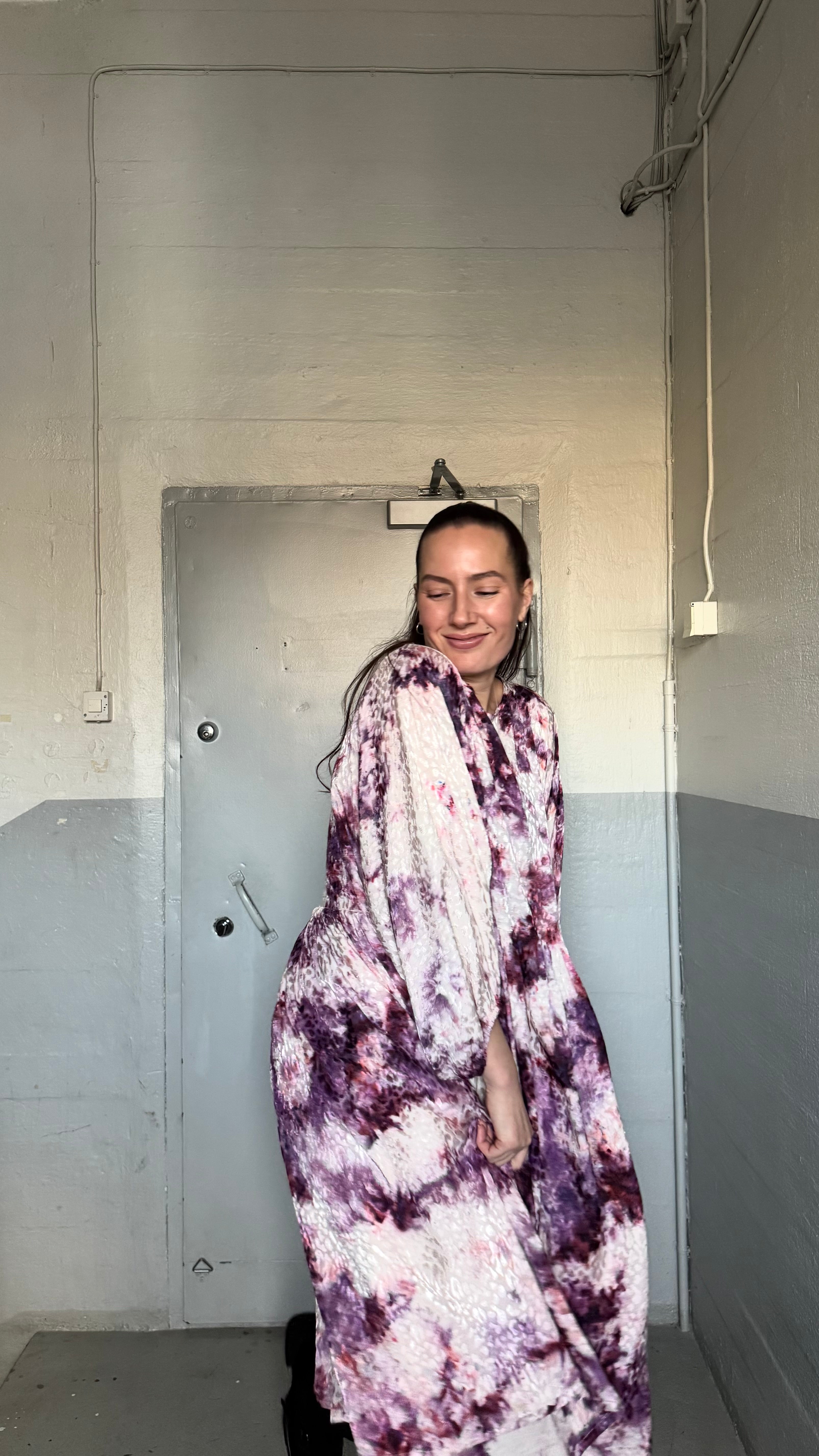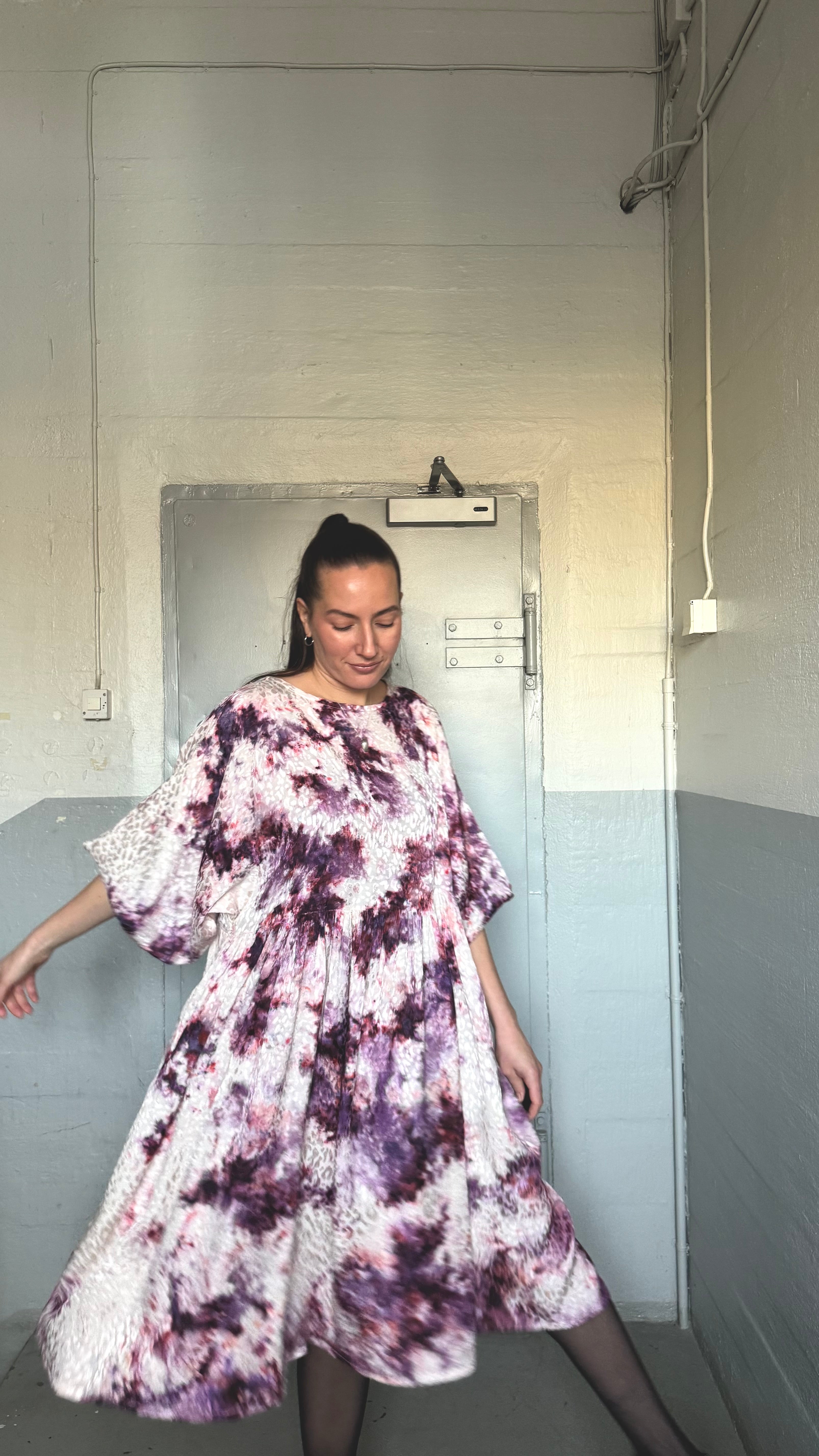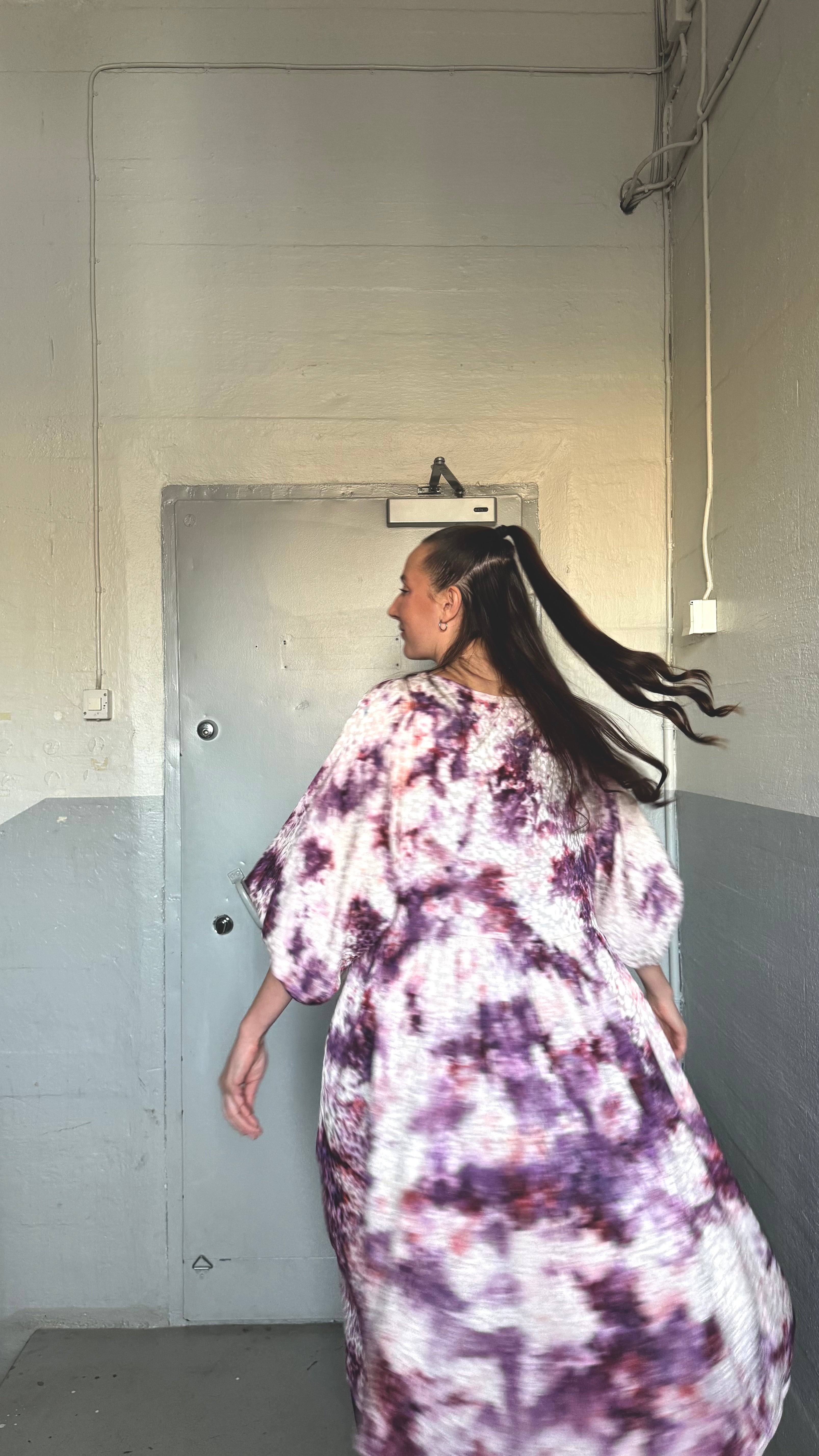 Tämä pantterikankainen Aurora on mitaltaan lyhyttä Aurora-mekkoa hieman pidempi, jolloin helma laskeutuu polven alapuolelle ja luo kokonaisuuteen juhlavamman, elegantin pituuden. Malli säilyttää Auroralle tutun rennon istuvuuden ja liikkeen vapauden, mutta tuo asuun hienostuneen juhlavivahteen.