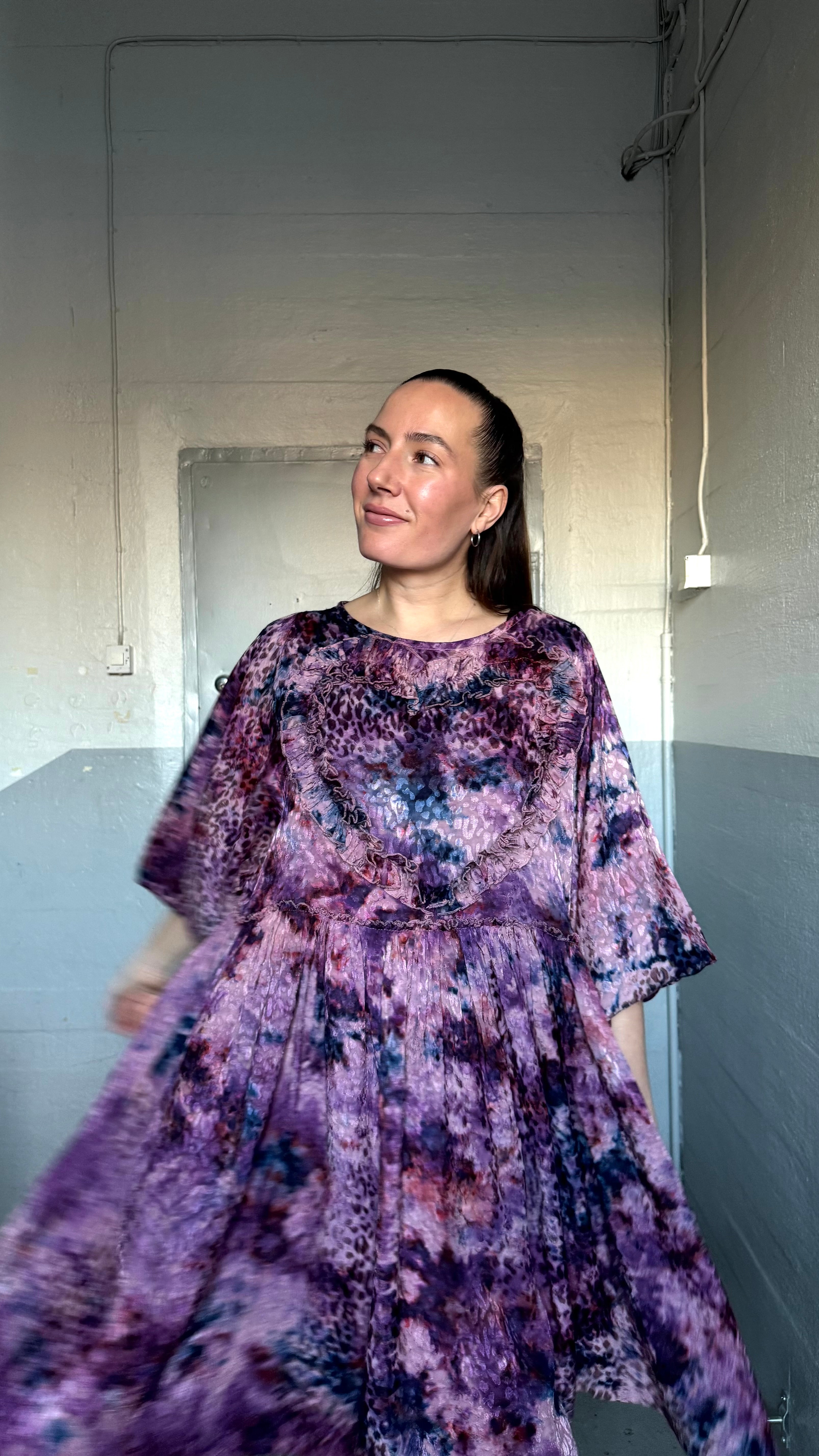 Pesethän mekon hellävaraisesti käsin ja noudatat pesuohjetta. Älä hankaa tai linkoa, jotta kauniit yksityiskohdat säilyvät pitkään.