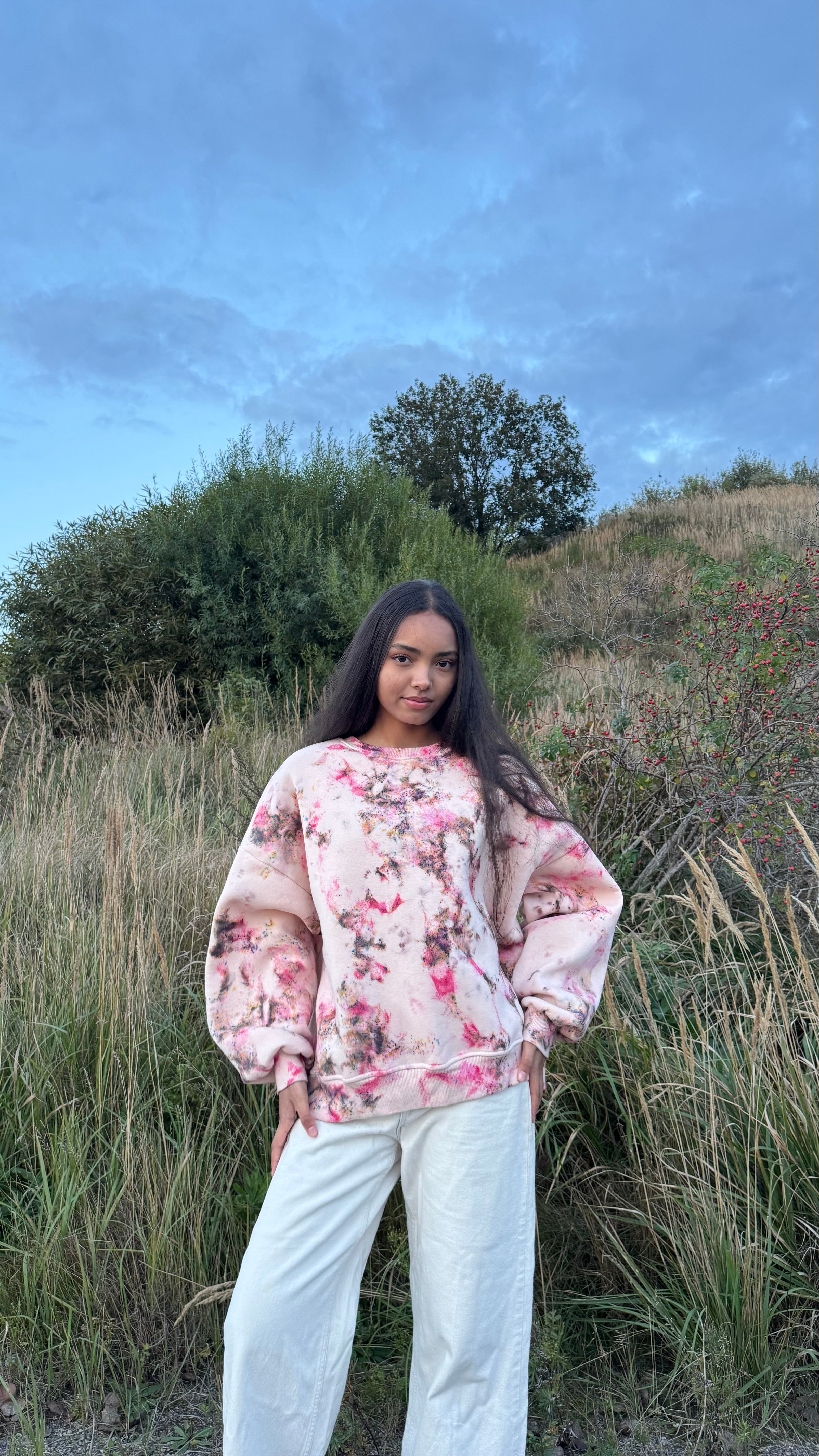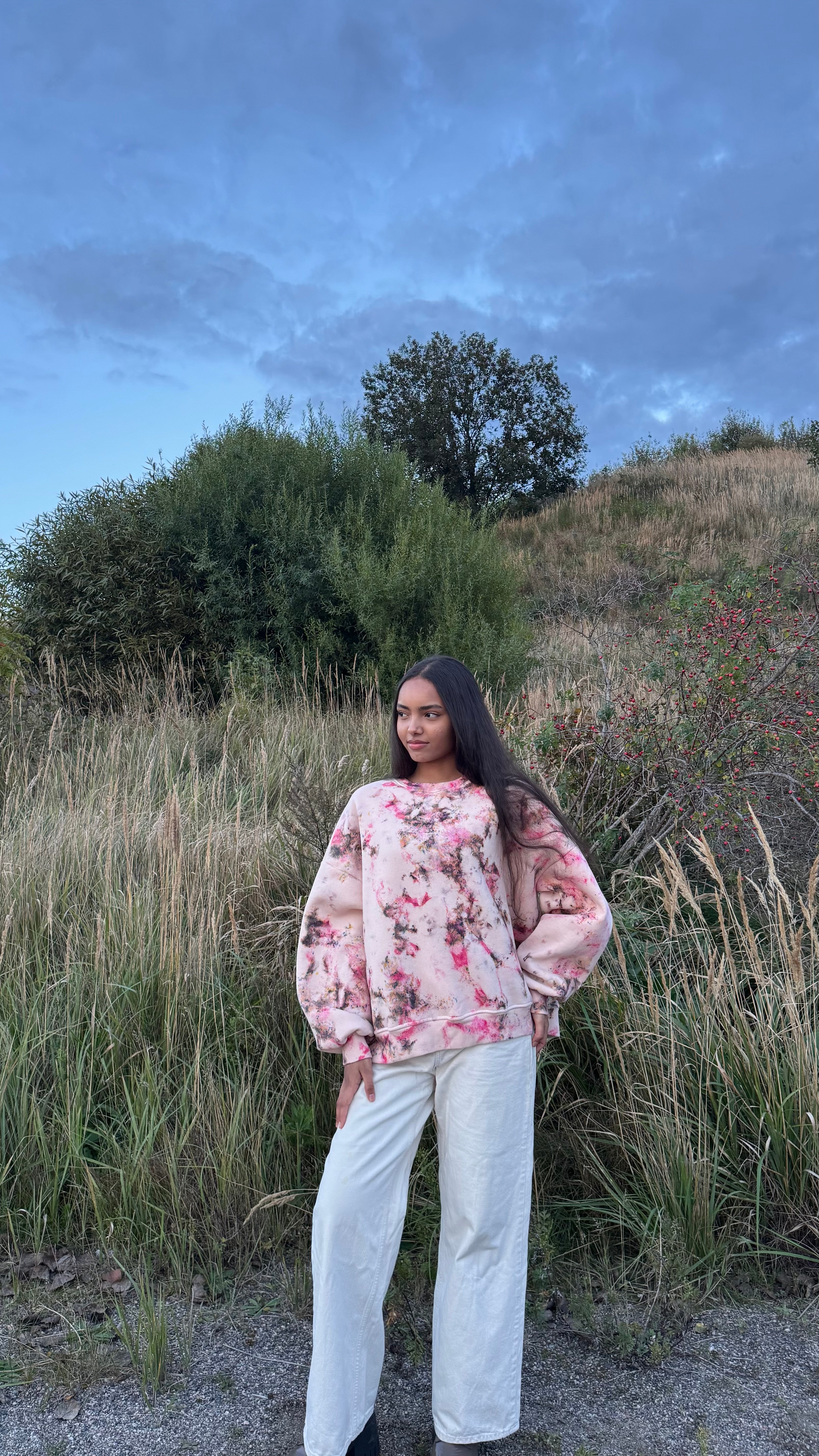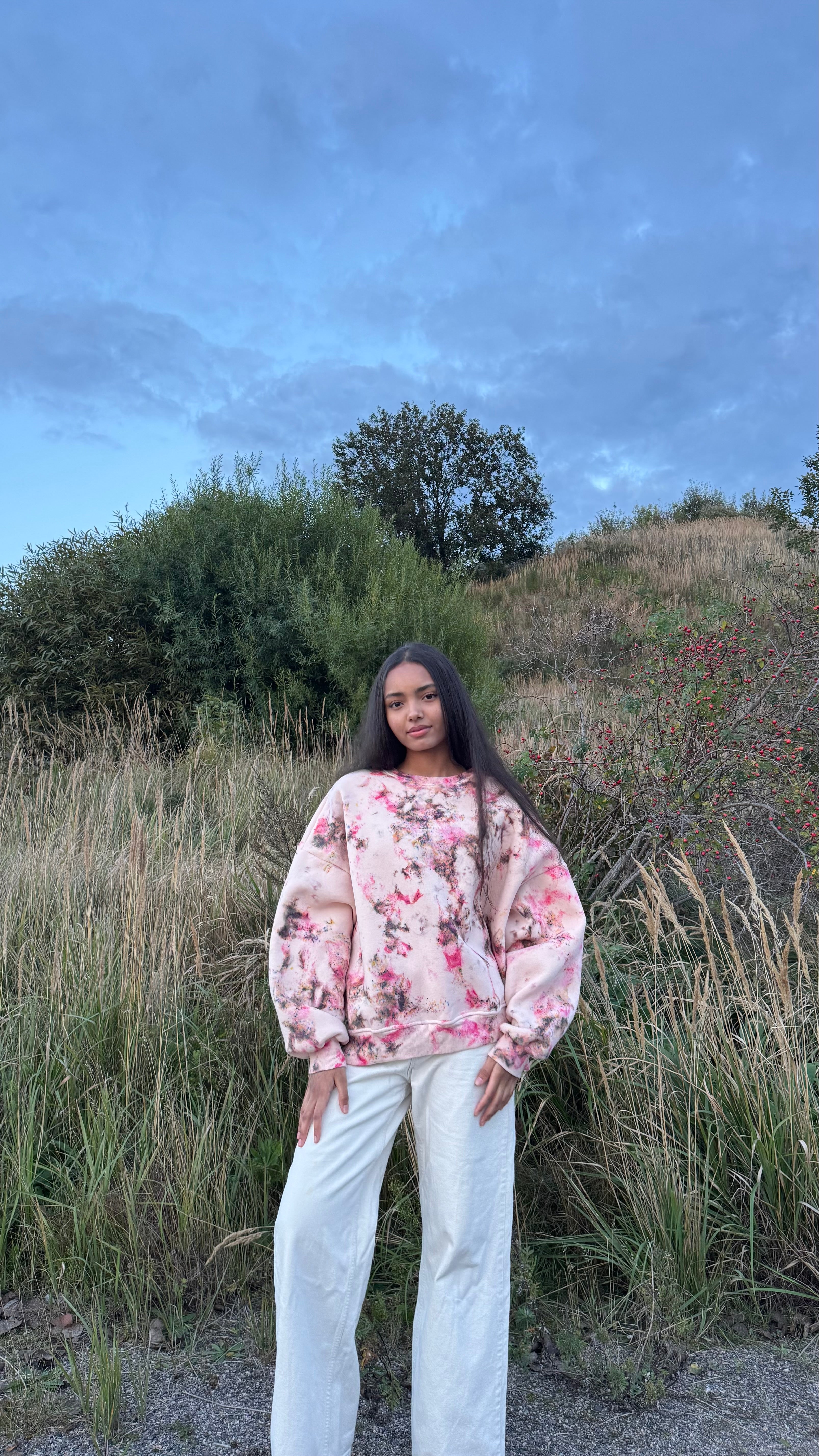 Halusin suunnitella Hanimaalle oversize-mallisen collegepaidan, mitä on kiva yhdistellä eri asujen kanssa. Tietenkin Hanimaa-twistillä siitä tehtiin uniikki – paita, jollaista ei tule toista kadulla vastaan! Collegepaita on väljä malliltaan, siinä on pitkät hihat ja madallettu olkasauma. Kangas on superpehmoista ja laadukasta collegea, joka pitää kauniisti muotonsa.