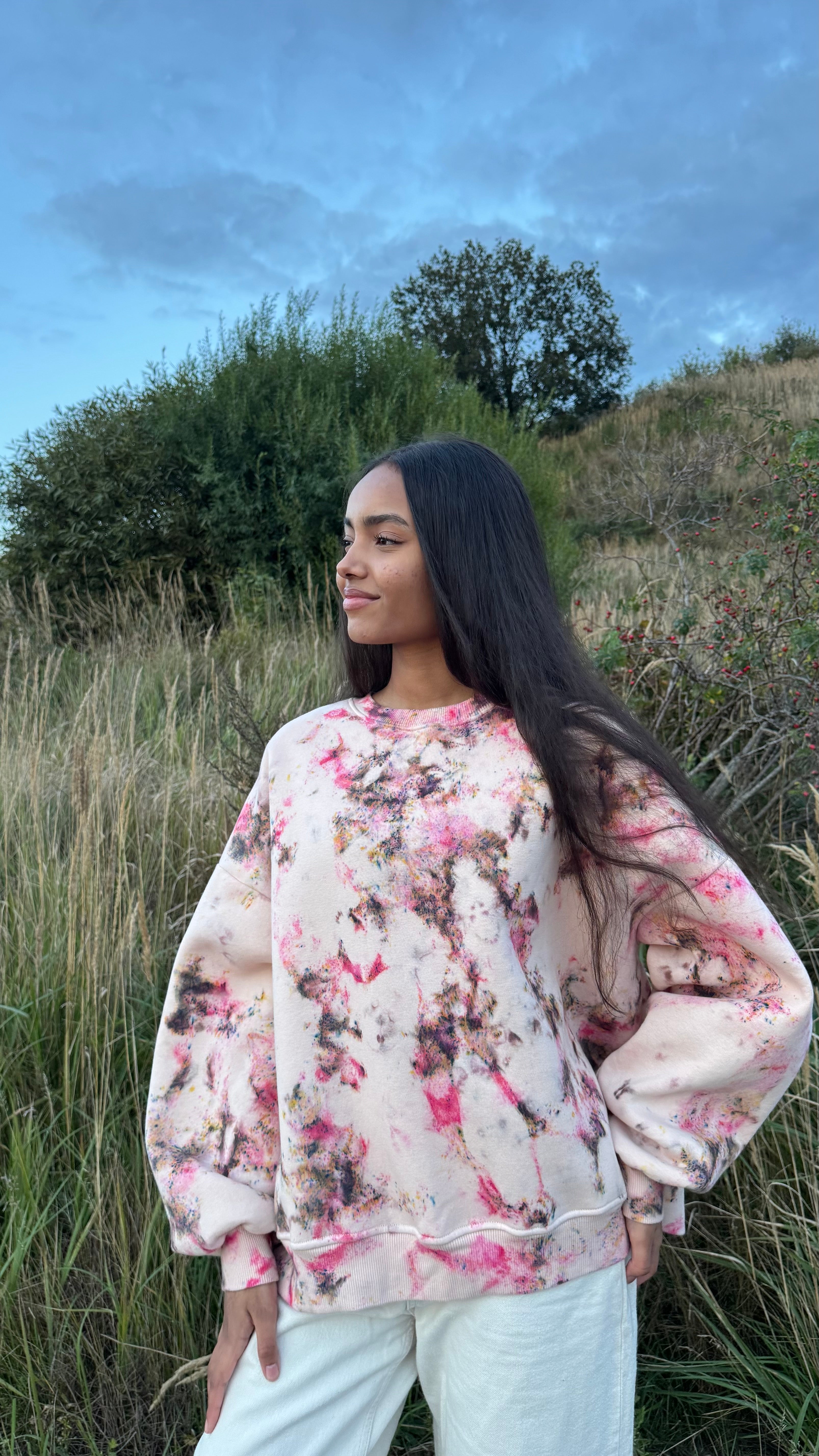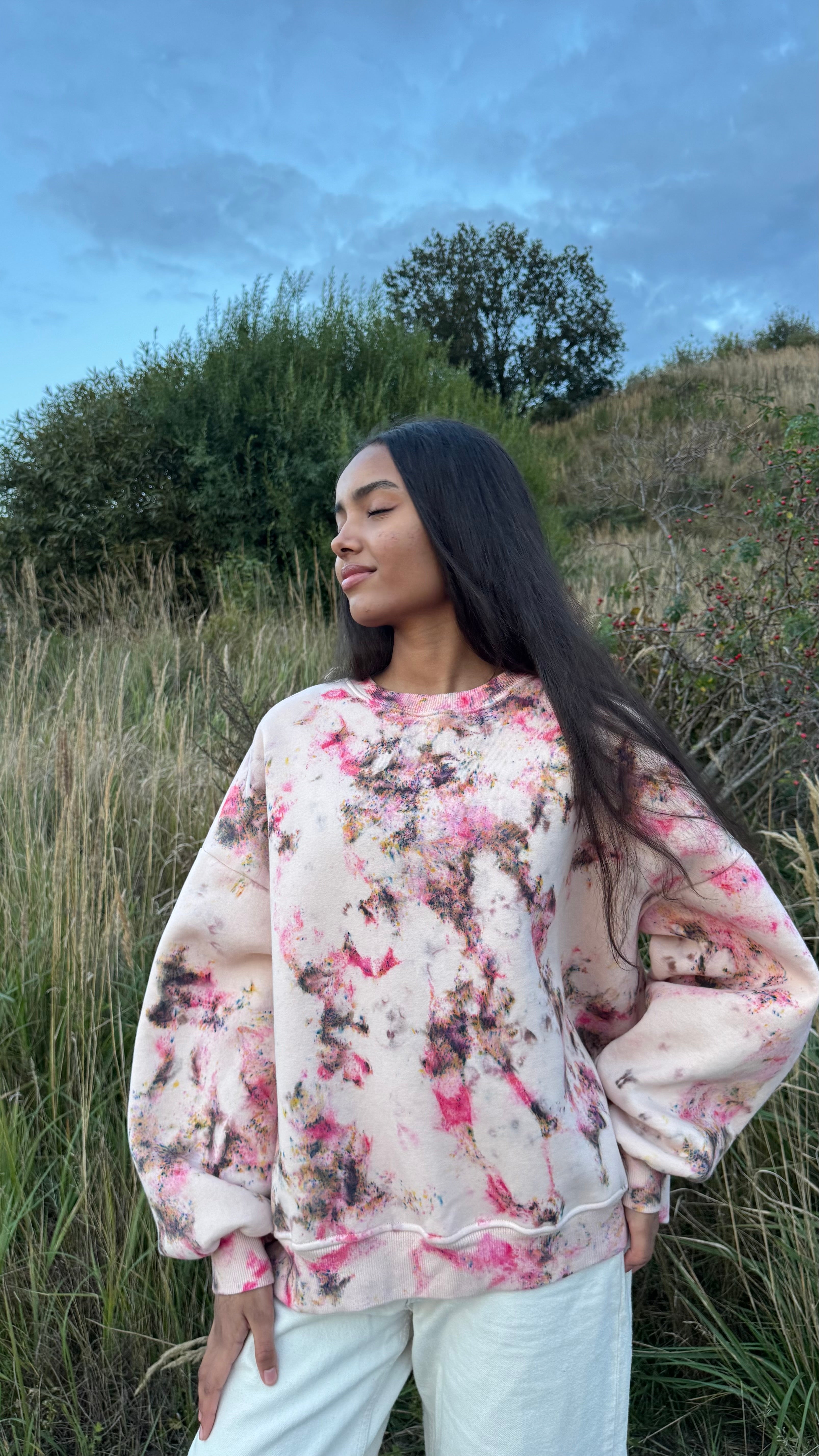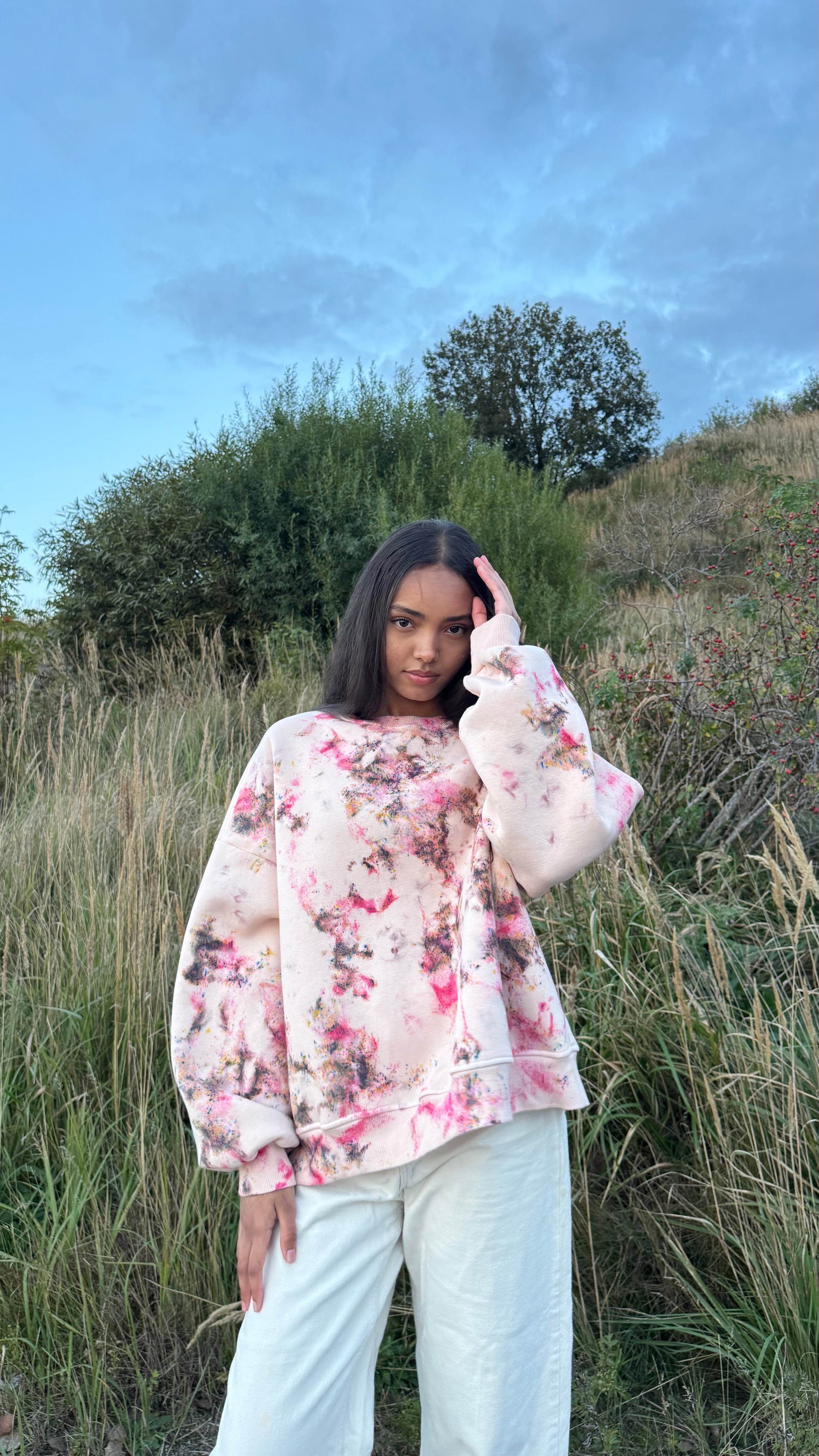 Halusin suunnitella Hanimaalle oversize-mallisen collegepaidan, mitä on kiva yhdistellä eri asujen kanssa. Tietenkin Hanimaa-twistillä siitä tehtiin uniikki – paita, jollaista ei tule toista kadulla vastaan! Collegepaita on väljä malliltaan, siinä on pitkät hihat ja madallettu olkasauma. Kangas on superpehmoista ja laadukasta collegea, joka pitää kauniisti muotonsa.