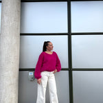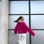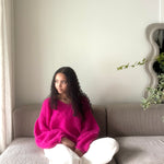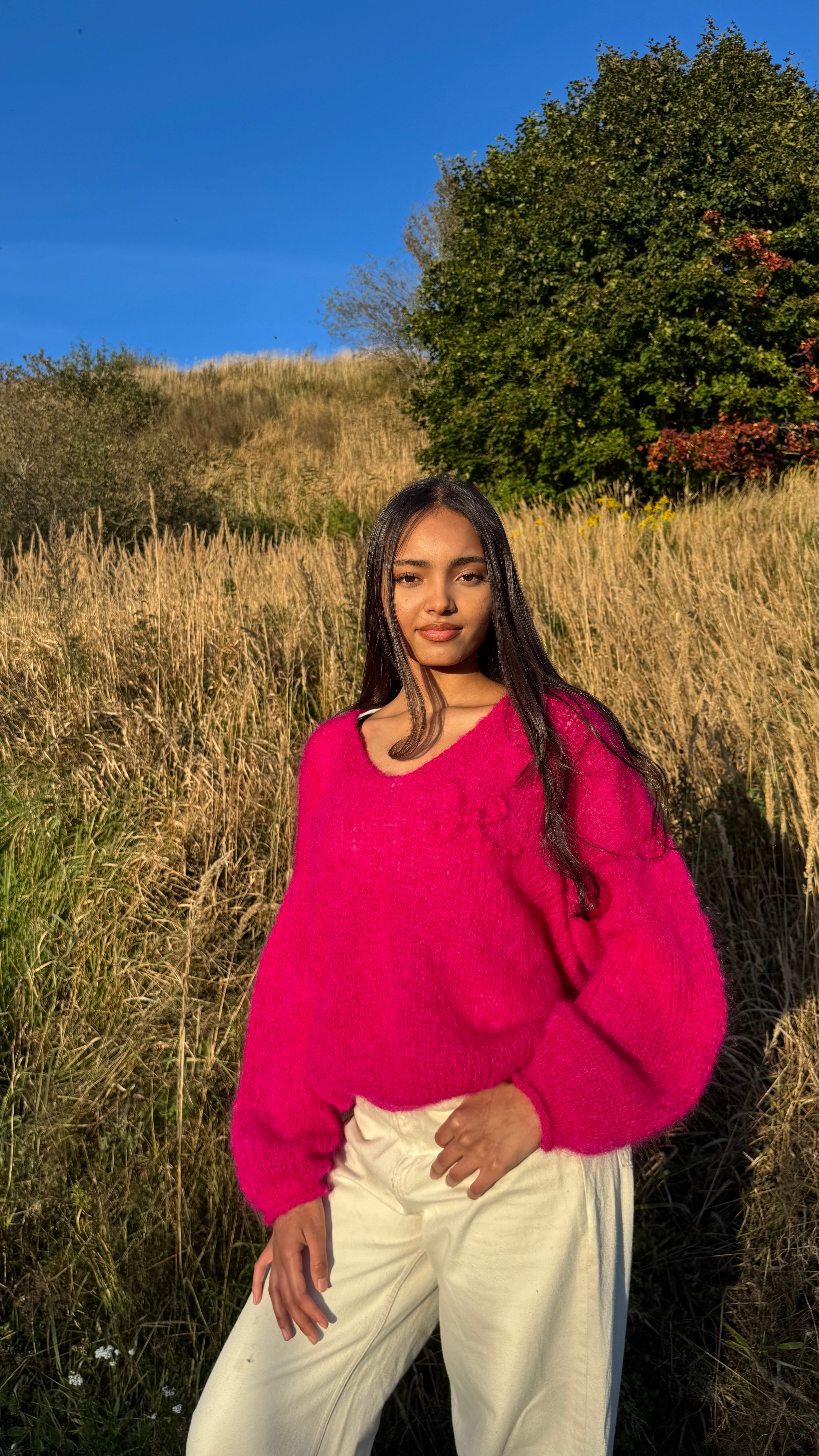 Tämä neulepaita on enemmän kuin vain vaate – se on tarina. Keväällä sain idean neulemallistosta, ja kun kerroin siitä äidilleni, hän innostui tarttumaan puikkoihin saman tien. Siitä lähtien hän on neulonut kesän läpi, yksi silmukka kerrallaan, jokaisen Hanimaan Hali-neuleen. Neuleet on siis suunniteltu ja neulottu käsin Suomessa, rakkaudella ja taidolla. Kotimaista käsityötä.