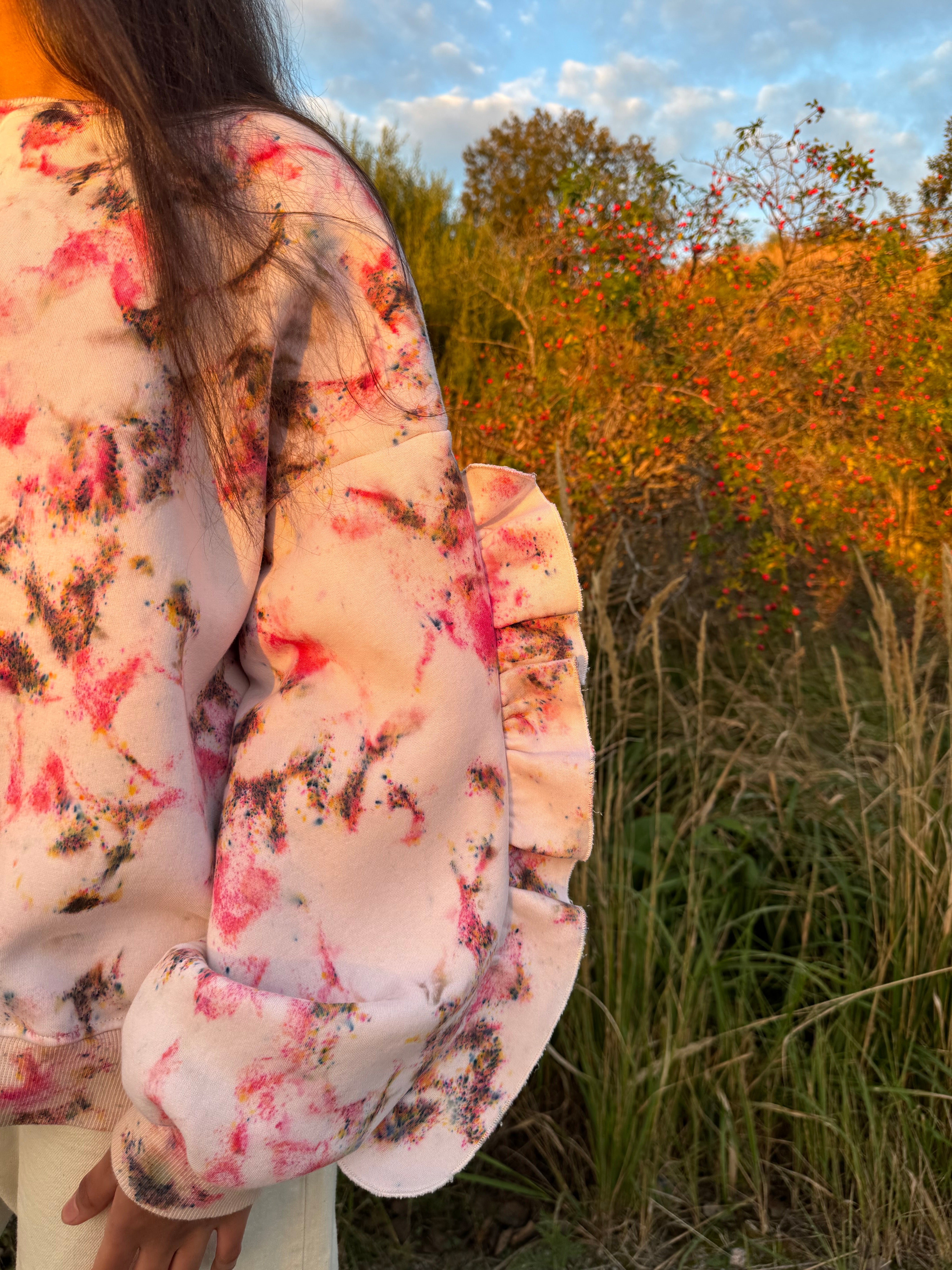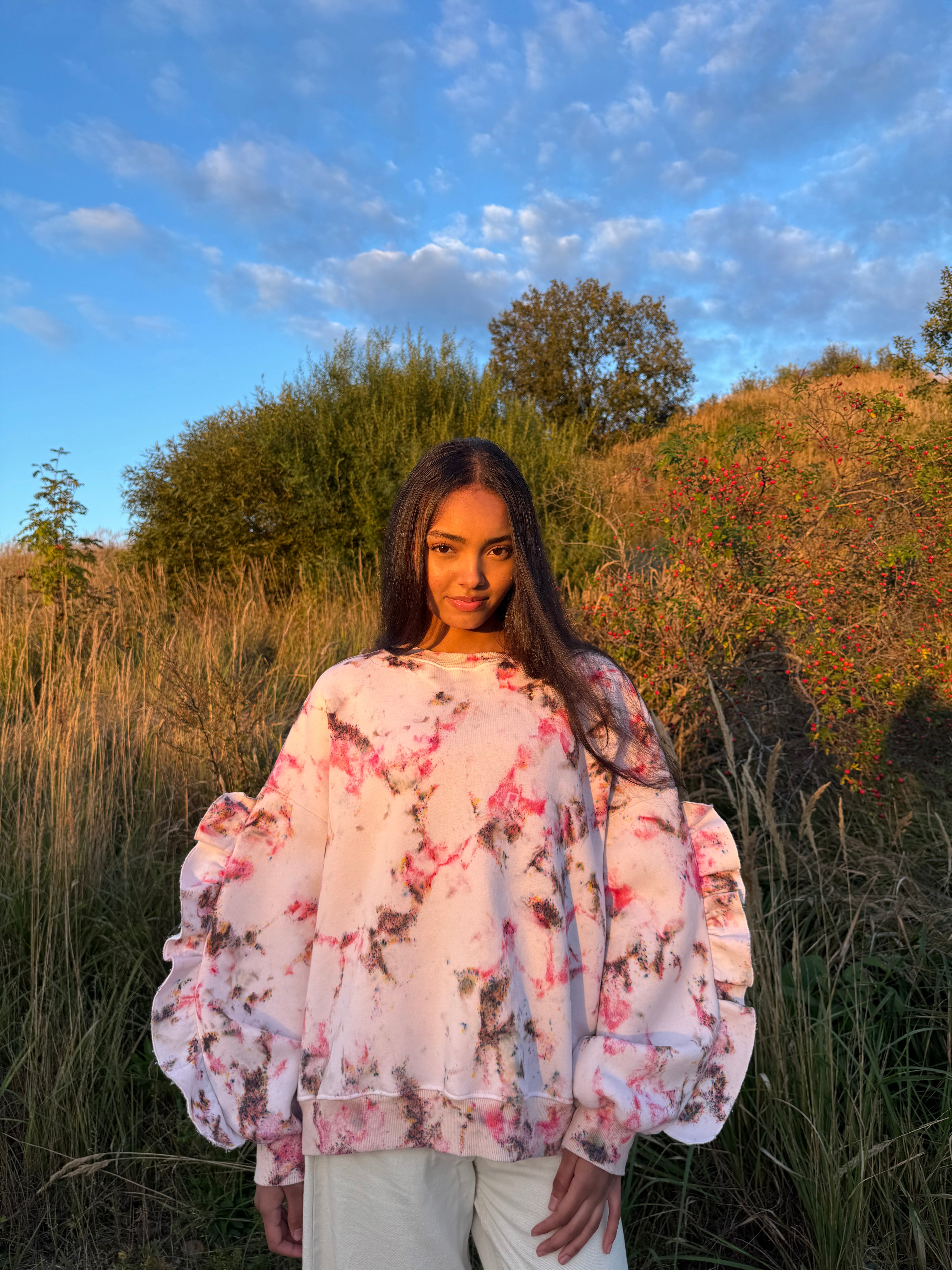 * Mallilla päällä vastaava väri. Pieniä kuvio ja sävyeroja saattaa esiintyä, koska vaate käsinvärjätään. Se tekee jokaisesta vaatteesta uniikin kappaleen!