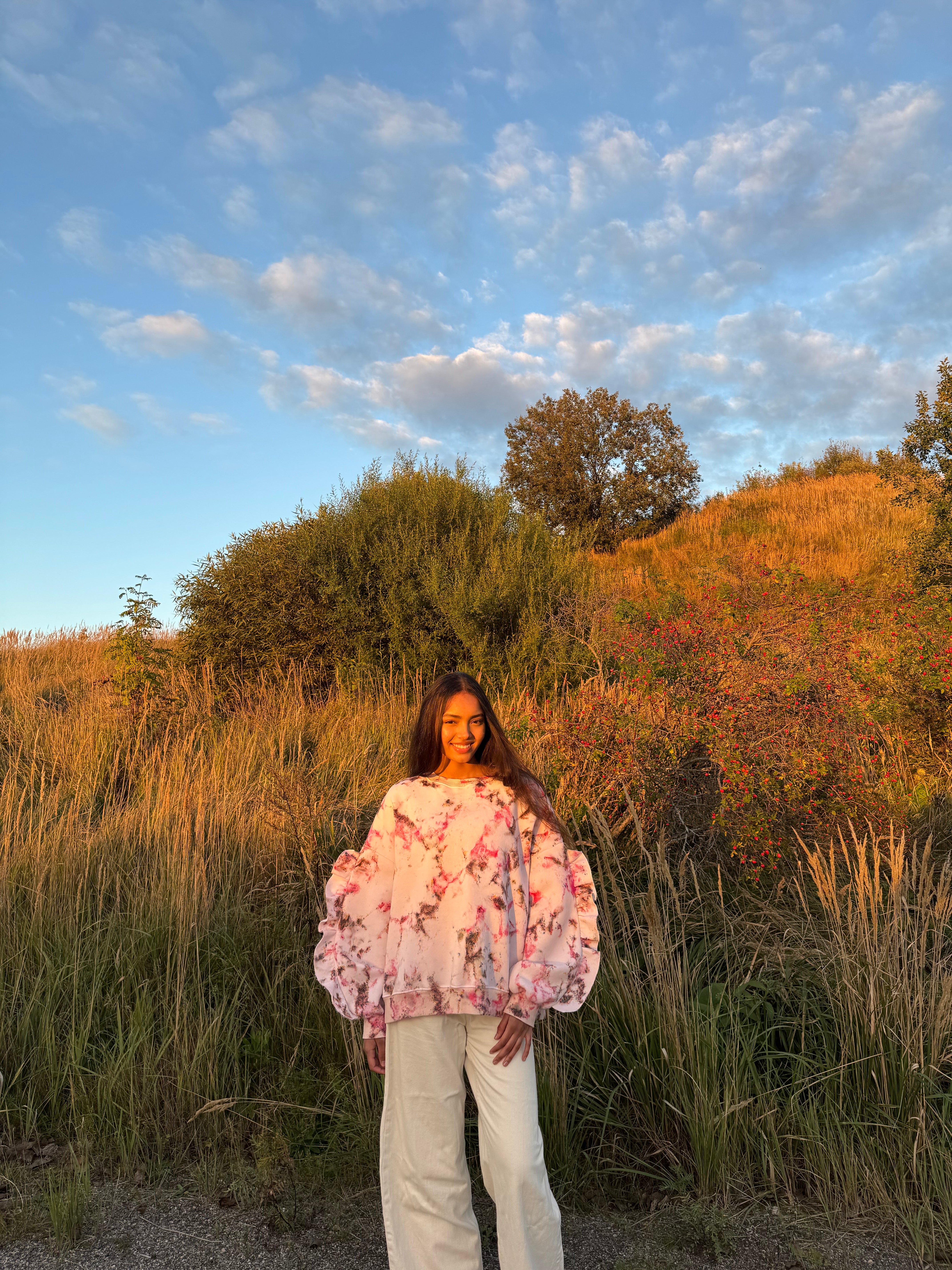 Näyttävä mutta mukava, rento mutta huoliteltu – Hani-collegepaita sopii täydellisesti pitkien hameiden, farkkujen ja leveälahkeisten housujen kanssa!