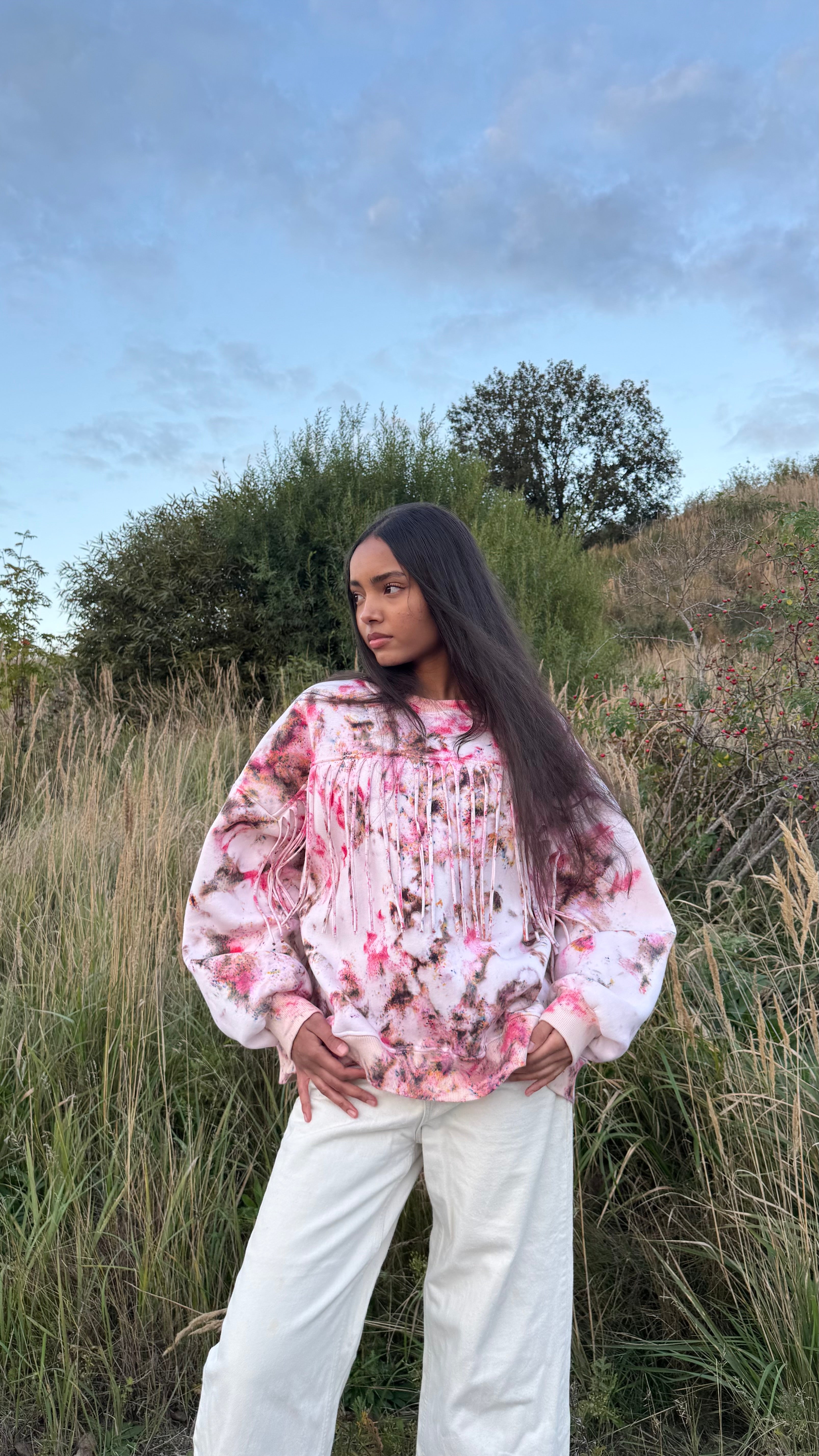 Syksyn tyylikkäin look syntyy, kun yhdistät Malla Collegepaidan nahkahousuihin tai leveälahkeisiin farkkuihin ja nilkkureihin – hapsujen ansiosta asu saa boheemin cowgirl-twistin. Arkeen se toimii täydellisesti myös tennareiden tai maihareiden kanssa, ja kerrospukeutumalla saat paidasta luottovaatteen aina kahvilapäivistä syysretkille.